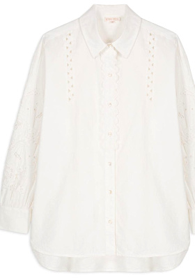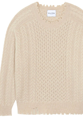Glisser le top sous le pull en laissant apparaître le col du tee-shirt sous celui du pull. Finaliser cette tenue via un chignon haut coiffé/décoiffé ou une coupe courte ébouriffée. L'idée est ici de jouer sur les contrastes en mariant pull volontairement destroyed et jupe ultra sophistiquée, mais aussi en télescopant bague délicate et manteau un peu plus rustique.