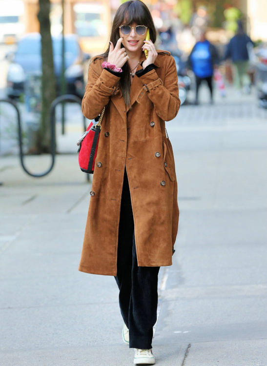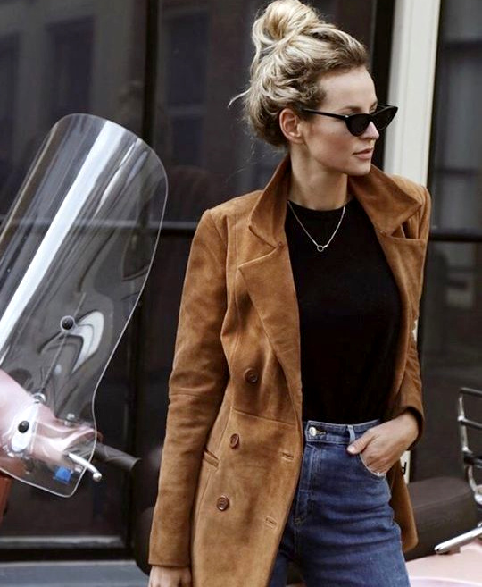 Prouver que l'on peut succomber en 2024 à l'attrait du cuir suédé sans pour autant passer par la case "blazer". Se prendre pour une héroïne de western en se glissant au sein (à laquelle on associera une paire de baskets vertes). Reproduire la dégaine que notre mère avait dans les années 70. Célébrer notre amour des années "Peace and Love" en lui associant , tee-shirt vintage et baskets Adidas Samba. Démontrer à notre meilleure amie que camaïeu de marron ne rime pas forcément avec dépression automnale en optant pour le mix trench + + . Relire Françoise Sagan assise sur un banc public. Jouer avec le concept de superpositions en glissant en dessous une veste en jean, un k-way coloré ou une capuche amovible. Sublimer les pièces évoluant dans la gamme des violets (voir , et ). Prouver que la nonchalance du cuir suédé est bien plus chaleureuse que le maintien rigide de la gabardine de coton cher à la maison Burberry. Offrir un twist inattendu à sa sempiternelle marinière (voir ici). Militer pour l'adoubement du duo marron/noir (voir ici). Insuffler une once de glamour rétro au style masculin de ce manteau en chaussant une paire de lunettes cat-eye (voir ici). Déguster des marrons chauds. Se prendre pour une Américaine des années 80 en chaussant une casquette de baseball bleu marine. Assumer sa foi inébranlable en l'être humain en portant son sac à main généreusement ouvert (voir ici). Faire tourner la tête du postier en faisant de ce manteau une robe de chambre à part entière (voir ici). Traîner des heures chez le dernier disquaire du quartier. Retomber en adolescence en le portant avec le trio jean baggy + Converses + tee-shirt universitaire délavé. Revoir toute la filmographie de Jane Birkin. Prolonger la vie de nos longues jupes estivales (que l'on portera avec une paire de boots motardes). Retarder le passage du manteau en cuir suédé à la veste en peau lainée en s'emmitouflant dans de longues écharpes colorées (voir ici). Réhausser la dégaine de nos sweats doudous (voir ici). Céder à l'appel chronique de la frange (voir ici). User et abuser des pièces jaunes de saison (voir ici, et ).