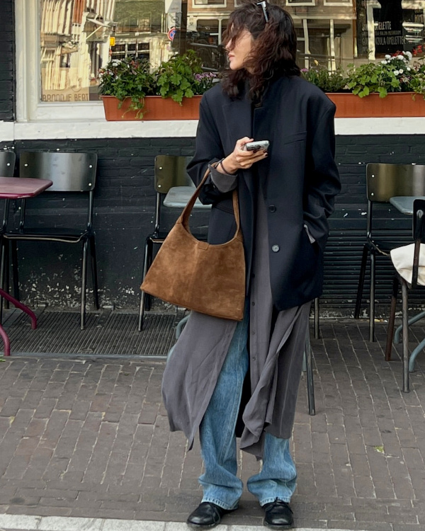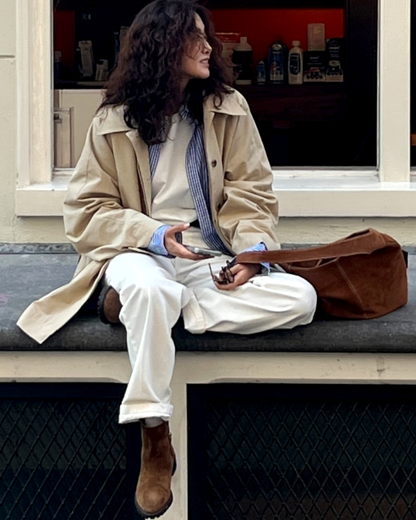 Réchauffer le duo tee-shirt + chemise rayée bleu/blanc au creux d'un trench mastic (voir ici). Glisser un petit pull manches courtes sous un débardeur en maille (voir ici). Associer pantalon en velours marron et chemise à rayures verticales bleues et blanches (voir ici). Adoucir le tandem pantalon kaki/chemise masculine au contact d'une maille caramel duveteuse (voir ici). Laisser dépasser une chemise à carreaux de ses pulls fins grand col V (à porter sur un jean large) (voir ici). Télescoper robe drapée et blazer un brin trop grand (voir ici). Insuffler une certaine dose de cosyness à ses jupes courtes en les mariant au tandem pull épais col V/ample chemise à carreaux (voir ici). Relever le col de ses blazers (voir ici). Opter pour des gilets zippés injectant ce qu'il faut de modernité aux tenues les plus classiquement casual (voir ici). Penser à associer une robe chemise longue et fluide au duo jean/blazer (voir ici). Ceinturer taille haute ses vestes de demi-saison (voir ici). Faire la part belle aux manteaux possédant une capuche pensée pour être portée (voir ici). Faire de son sac un vase à part entière (ou pas) (voir ici). Réchauffer ses totals looks denim au creux d'un blazer en tweed fleurant bon la campagne anglaise (voir ici).