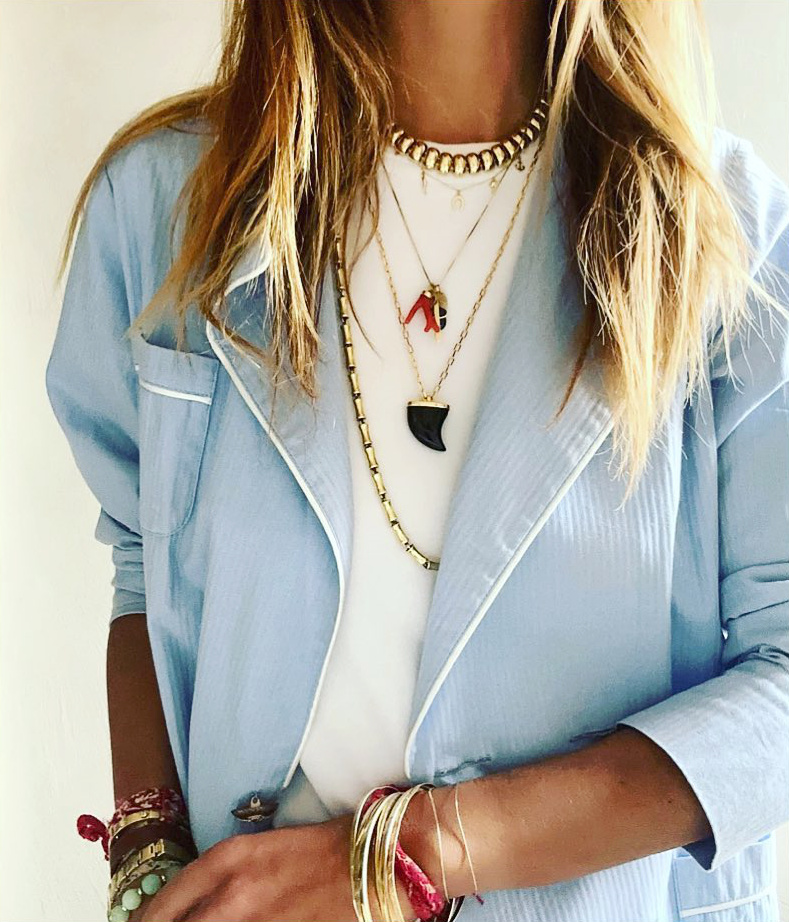 Rêvasser dans un grand hôtel en attendant le prince charmant (voir ici). Flâner sur l'île de Skye en Skykomish (modèle issu de la collaboration entre Birkenstock et Filson) et épais gilet col châle. Lui faire oublier sa nature "sleepwear" au contact d'une multitude de bijoux (voir ici). Se laisser hypnotiser par la performance de Demi Moore dans The Substance. Succomber à l'air du temps en la portant ouverte sur un marcel blanc et sous une veste marron en cuir suédé. Apporter un twist inattendu aux blazers masculins les plus classiques (voir ici). Se prendre pour Jane Birkin (voir ici). Offrir à ses jeans droits un zeste de subtile sensualité (voir ici). Dormir 30 minutes de plus, sachant que nous n'aurons pas à changer de top pour sortir chercher les croissants. Accumuler les bijoux gri-gri et autres chaînettes (voir ici et là). Apaiser ses mini jupes en cuir. Prouver à notre oncle normalien que pyjama ne rime pas forcément avec lâcher-prise (voir ici). Se composer des tenues de soirée brillant par leur nonchalance étudiée (voir ici). Convoquer le charme d'Audrey Tautou (voir ici). Arborer ses bijoux les plus précieux sans prendre le risque d'en faire trop. Renouveler avec une pointe d'audace le combo + chemise à rayures bleues.