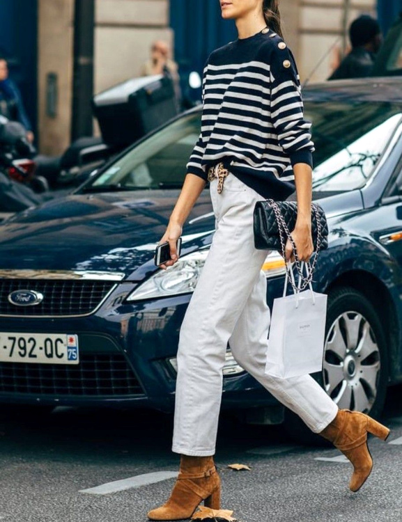 Saupoudrer d'effluves boudoir l'énergie utilitaire du chino kaki. Pensez à la substituer à la marinière, tous les looks à base de cette dernière fonctionnant parfaitement avec la chemise de pyjama rayée (voir ici, ici et là). Exacerber l'espièglerie du léopard en mariant jupe tachetée, bottes seventies noires, bonnet charbon en cachemire et chemise de pyjama nouée sur le devant. Surjouer l'effet "saut du lit" en se lovant au creux évoquant celui oublié par un vieil amant. Renouveler ses camaïeux de bleus en la glissant sous une veste en jean bien brut. Jouer à la jeune héritière hongkongaise en lui associant manteau en fausse fourrure marron et New Balance fourrées Miu Miu. Déployer notre âme d'artiste en télescopant les imprimés. Les rayures bleu marine de cette chemise composeront en effet de savoureux cadavres exquis graphiques avec les motifs de ces jupes (voir ici et là). Renouveler son uniforme jean droit + Mary Jane + gilet épais en troquant son tee-shirt blanc contre une chemise de pyjama. Télescoper deux facettes de l'univers de la nuit en lui mixant . Assouvir notre amour du bordeaux dans toutes ses nuances. S'essayer au port .