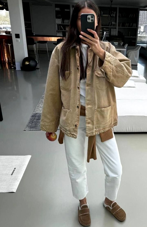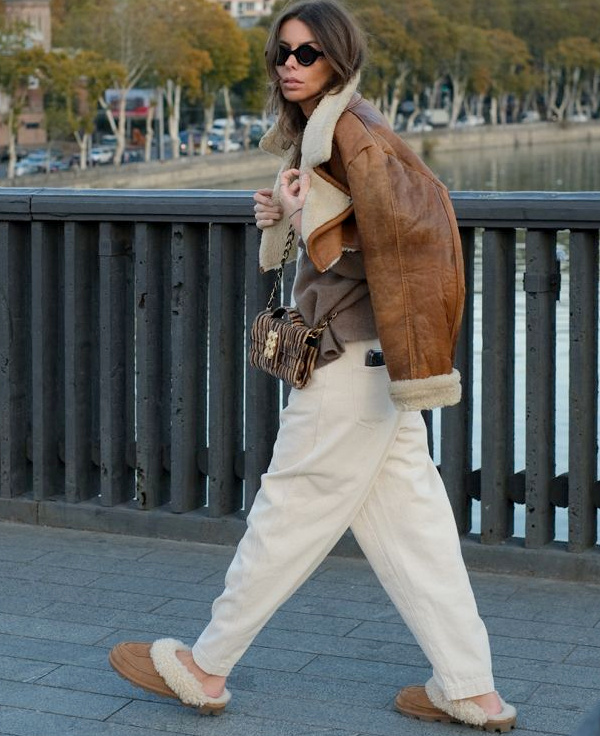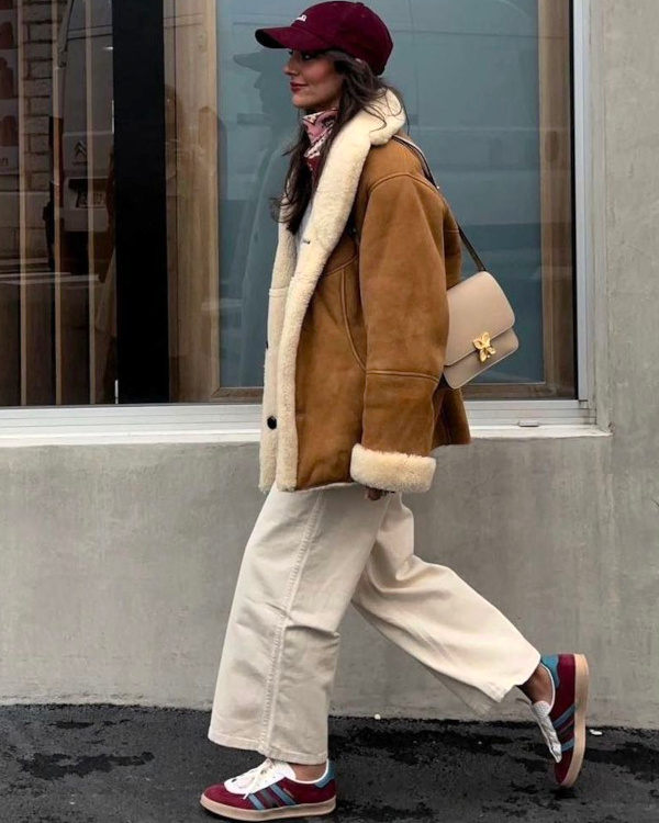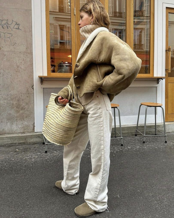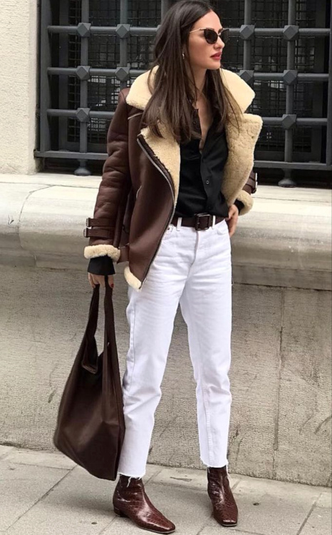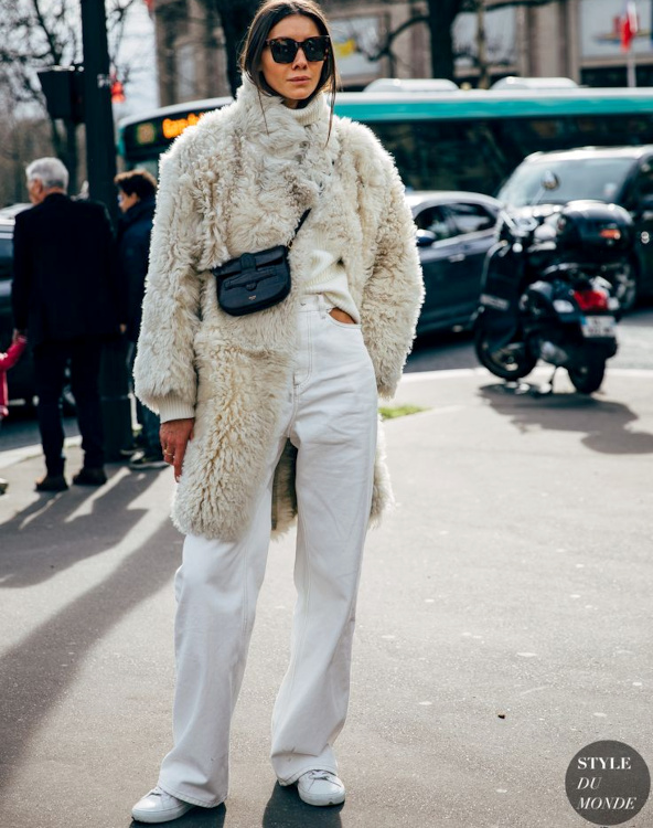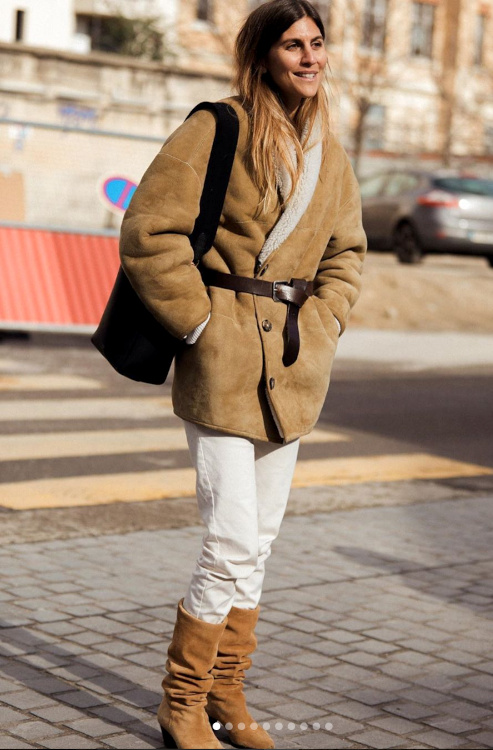 Le choisir oversize afin d'apporter de la densité à la tenue (voir ici). Privilégier les longueurs 7/8 permettant d'alléger la silhouette (voir ici). Le marier au mix bistre/rayures verticales bleu et blanc (voir ici). Ne pas mixer jean longueur feu de plancher et ample manteau longueur sous genou (voir ici). Le faire cohabiter avec les différentes versions saisonnières de la veste Carhartt (voir ici). Le travailler en trio avec les teintes marron et lilas (voir ici). Rehausser le mix ample peau lainée/jean large 7/8 au contact d'accessoires bordeaux (voir ici). Éviter de le choisir dans un blanc trop éclatant (voir ici). Le conjuguer sur une note "trappeur excentrique" (voir ici). Associer ses versions larges (ou carrot) à des manteaux plutôt courts (voir ici et là). Le glisser dans une paire de bottes souples (voir ici). Préférer le gris au camel pour accompagner le duo noir et blanc (voir ici). Ne pas hésiter à lui insuffler une dimension cosy en chaussant des mules fourrées (voir ici, ici et là). L'incorporer au sein de camaïeux de beige/camel, le tout servi par un mix and match de textures (voir ici et là). Lui offrir une dimension néo bourgeoise en le réchauffant au creux d'un manteau 3/4 sans col en fausse fourrure (voir ici). Choisir ses manteaux teddy bear deux teintes au-dessus de celle du pantalon (voir ici). Lui marier marinière et peau lainée (voir ici). Le faire cohabiter avec un marron ultra foncé (voir ici et là). Révéler son style seventies en lui associant long trench et chemise à rayures (voir ici).