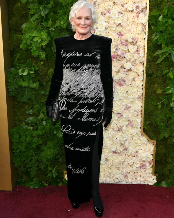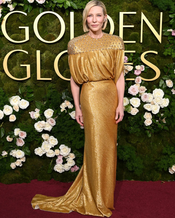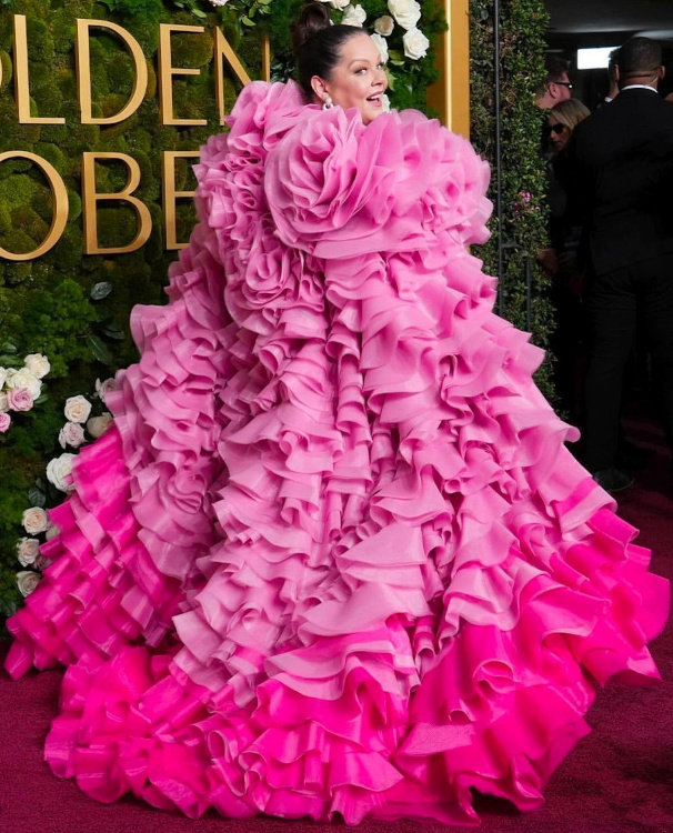 Si l'on reconnaît la technicité remarquable qu'exigea la robe Schiaparelli de Naomi Watts, on ne parvient pas à déterminer si le résultat est réussi ou non (voir ici et là). À 76 ans, Kathy Bates arbore une nouvelle silhouette (voir ici et là). La possibilité de flirter avec le cliché du grand manteau d'exhibitionniste n'a apparemment pas effrayé Keri Russell (voir ici). On préfère Tilda Swinton en Haider Ackermann… (Chanel) Envoyer trop d'informations pour un look n'est jamais bon signe… (Veronica Ferres) Le vert anis ("it" couleur du printemps 2025) fait son apparition sur les tapis rouges (Leighton Meester en Versace). Kate Winslet joue la carte de la sécurité, au risque de frôler l'ennui (voir ici). Zoë Kravitz parvient une fois de plus à fusionner élégance, chic et glamour (Saint Laurent - voir ici et là). Kirsten Dunst trouve le juste milieu entre naturel et sophistication (Gucci - voir ici et là). L'effet tie and dye a malheureusement tendance à "cheapiser" les robes du soir (Sharon Stone). Teinte phare de l'hiver 2025, le marron ne pouvait pas se permettre de bouder les Golden Globes (Salma Hayek Pinault en Gucci). Melissa McCarthy semble avoir décidé de voir la vie en rose (Christian Siriano).