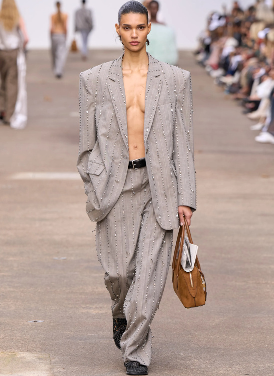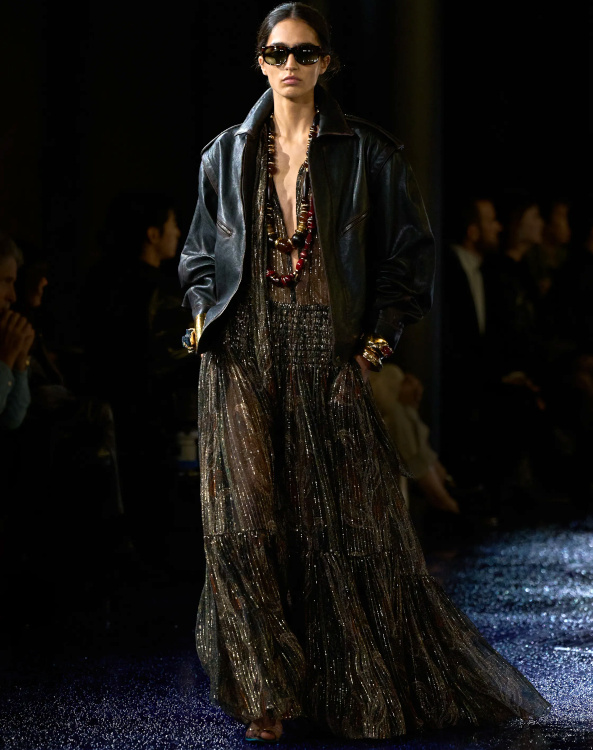 Les marques affineront leur stratégie de communication en ciblant de manière plus précise les influenceuses à qui elles envoient leurs produits. Les croisières de luxe deviendront écoresponsables (voir ici). Les marques authentiques au rapport qualité/prix juste seront de plus en plus recherchées (voir ici). Le duo vert anglais/parme boostera les silhouettes les plus classiques (Gucci). Certaines s'obstineront à ne pas comprendre le second degré de Miuccia Prada et adopteront "dans la vraie vie" ses slips d'extérieur 3.0 (voir ici). Les immenses lunettes de vue esprit seventies seront de plus en plus prisées (Angelina Jolie dans Maria de Pablo Larraín). Il sera de plus en plus difficile de faire la différence entre une photo réelle et une image générée par l'IA (voir ici, ici et là). Amelia Gray Hamlin verra sa cote exploser. La taille basse renouera avec le succès (Miu Miu, Stella McCartney). Les vestes de sport nineties s'arracheront sur les sites de seconde main (Miu Miu). La confusion entre Gucci et Valentino perdurera. Le total look jean renouera avec les sandales rouges (MO&Co. printemps 2025). Kim Kardashian continuera de se prendre pour la nouvelle Brigitte Bardot (voir ici). On s'habituera à observer les effets de la fontaine de jouvence sur le star system (voir ici, ici et là). On se lèvera plus tôt pour profiter de la lumière naturelle du matin (voir ici). La rue deviendra une pièce à part entière de nos appartements (Balenciaga). On attendra avec impatience la sortie de la série "Your Friends and Neighbors" afin de voir jouer la très sous-estimée Amanda Peet.