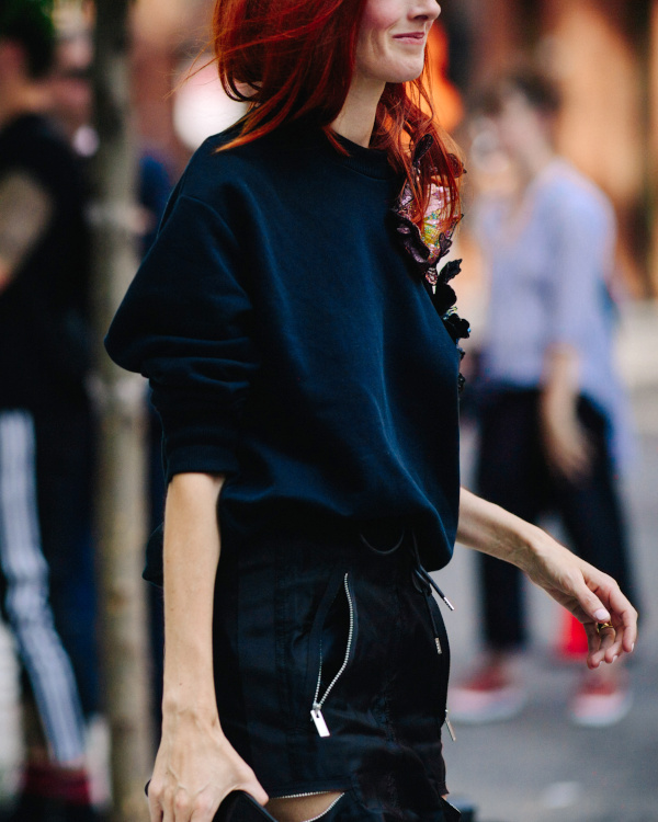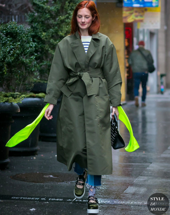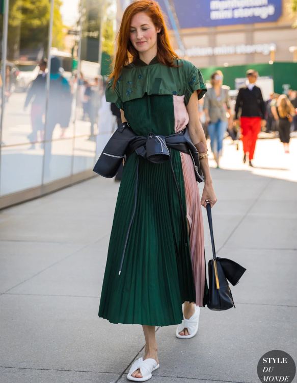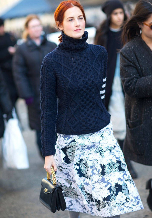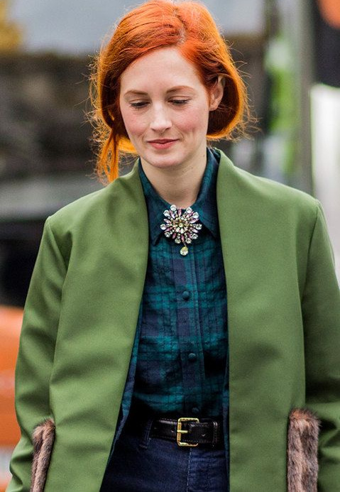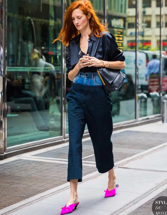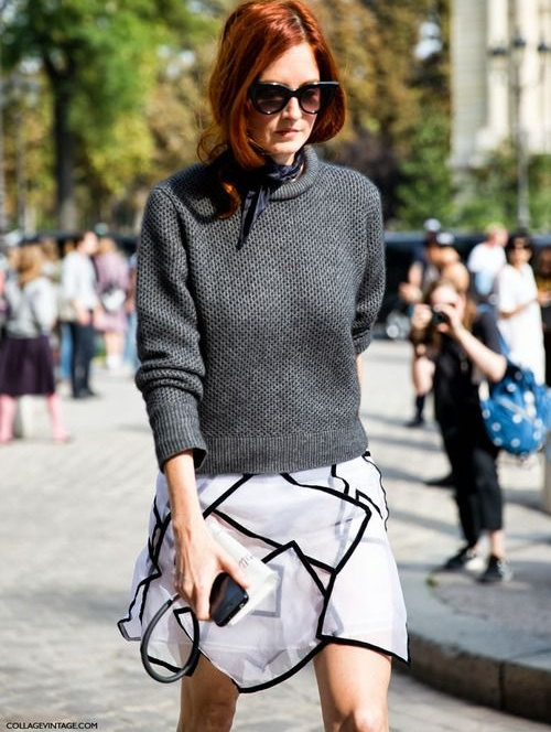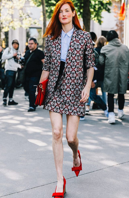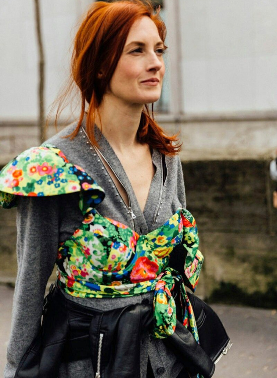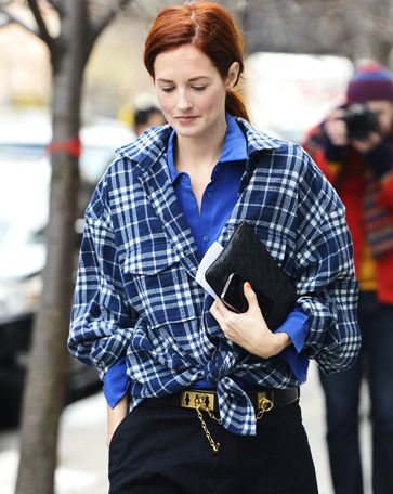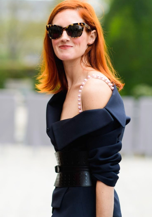 Découvrir une épaule afin de laisser apparaître une bretelle de caractère (voir ici). S'amuser à superposer bustier et lainage (voir ici). Ajouter de la densité et du relief à ses looks via un accessoire en fausse fourrure de qualité (voir ici). Pimenter ses robes droites midi via une ceinture corset (voir ici). Associer chemise hawaïenne et ample jupe midi noire (voir ici). Télescoper éléments sportswear/casual et pièce "princesse" (voir ici). Faire du bleu marine la couleur de prédilection des cheveux roux (voir ici). Porter ses écharpes croisées et glissées dans une ceinture (voir ici). Glisser une chemise à carreaux sous ses blazers les plus chics (voir ici). Assumer à 200 % le port du bermuda (voir ici).