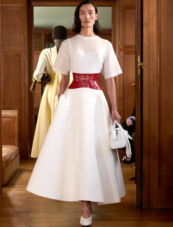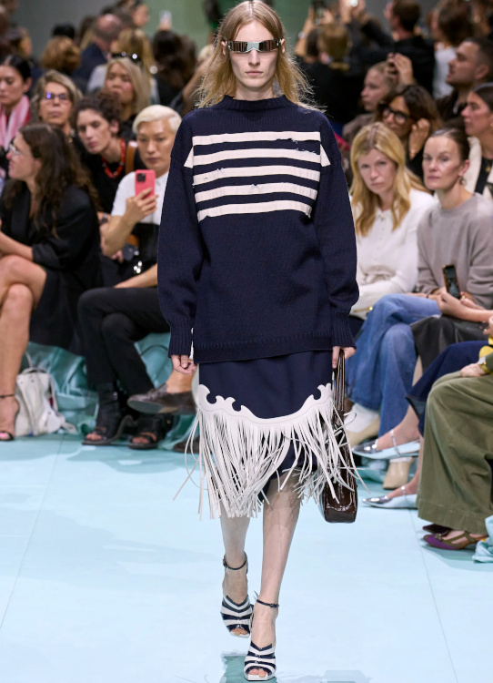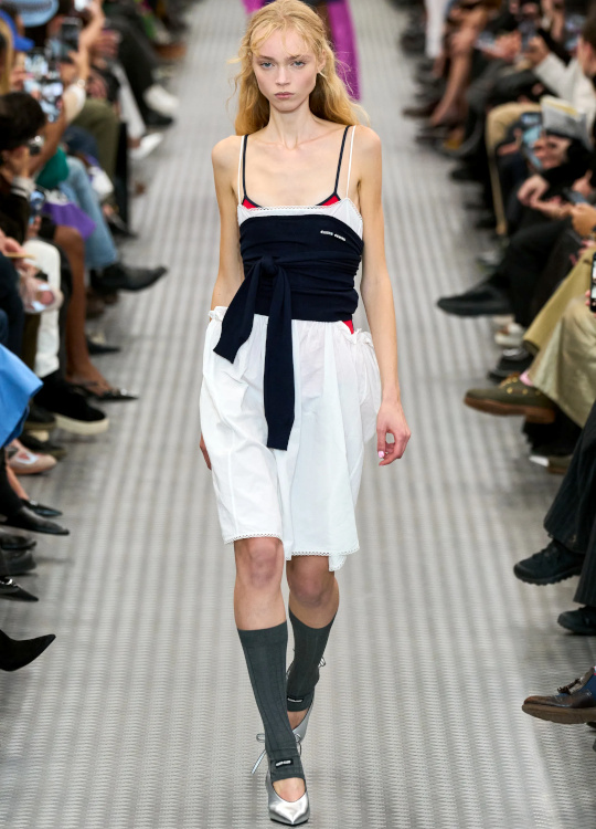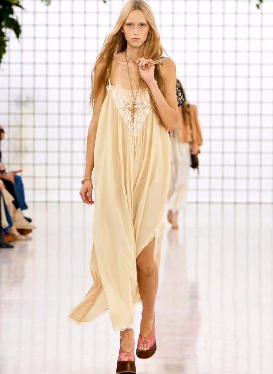 Le vieil anorak de tes années collège avec une robe blanche romantique tu mixeras (Miu Miu). De manger tu arrêteras (ou pas) (Balenciaga). Afin de te confectionner une sublime jupe à godets à coudre tu apprendras (Jacquemus, Bottega Veneta). Afin de continuer d'essayer de percer le "mystère Pamela Anderson", "The Last Showgirl" de Gia Coppola voir tu iras. Le concept de l'uniforme scolaire tu twisteras (Caetana Botelho). Afin de sauver jonquilles, oeillets et autres fleurs au destin tragique, au crochet tu te mettras (Bottega Veneta). Avec le bas de tes jeans à nettoyer généreusement les trottoirs tu continueras (Caetana Botelho). D'un nuage tu t'habilleras (Stella McCartney). Tes déshabillés comme des robes du jour à part entière tu traiteras (Chloé). À la dentelle anglaise la part belle tu feras (Alice Pilate). Des superpositions jupe/pantalon tu te méfieras (Trine Kjær). Avec les vêtements les plus inattendus tes chaussures bateau tu mixeras (Alice Pilate). En quête d'un jean pattes d'eph' saumon tu partiras (Chloé). À considérer les cadavres exquis stylistiques comme une option fashion viable tu te résoudras (Ale Rienzi). En mode sixties l'argenté tu traiteras (Vicky Montanari).