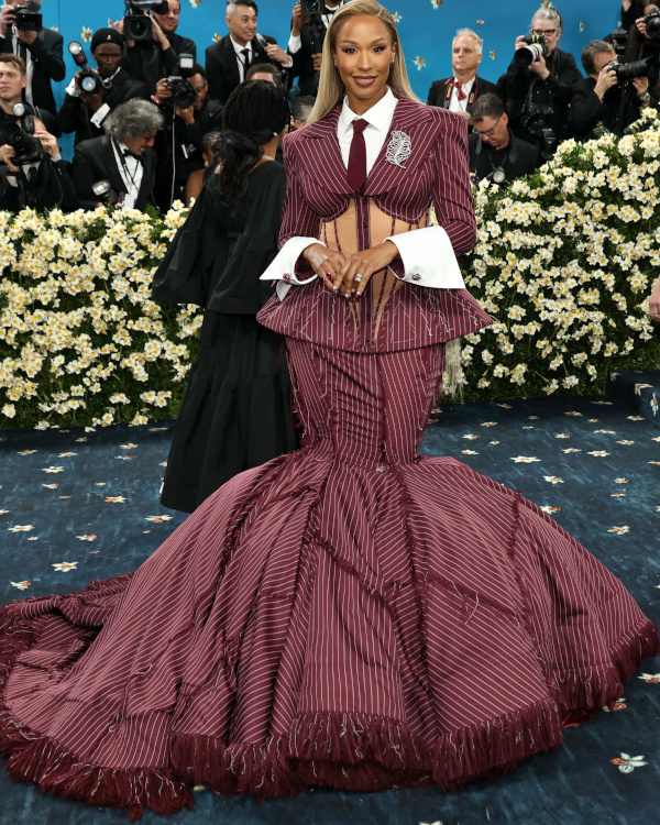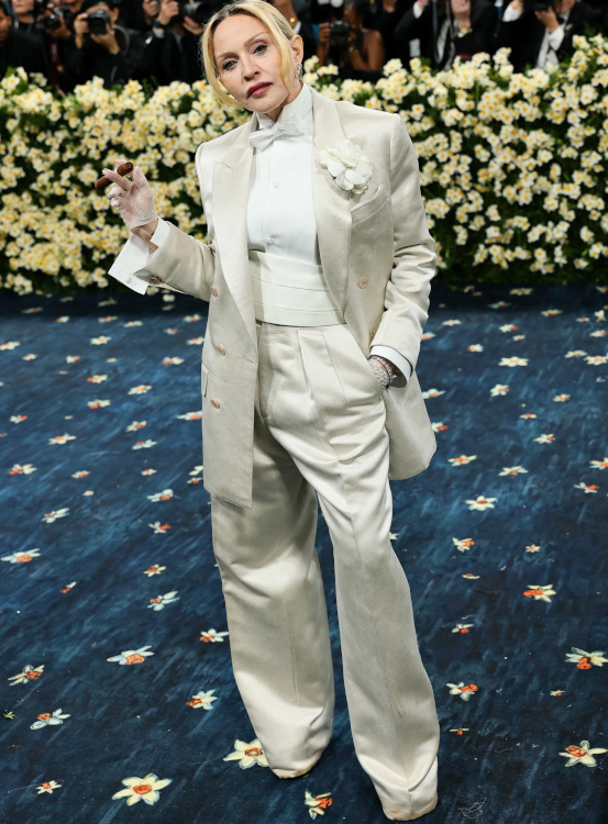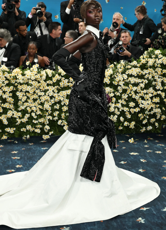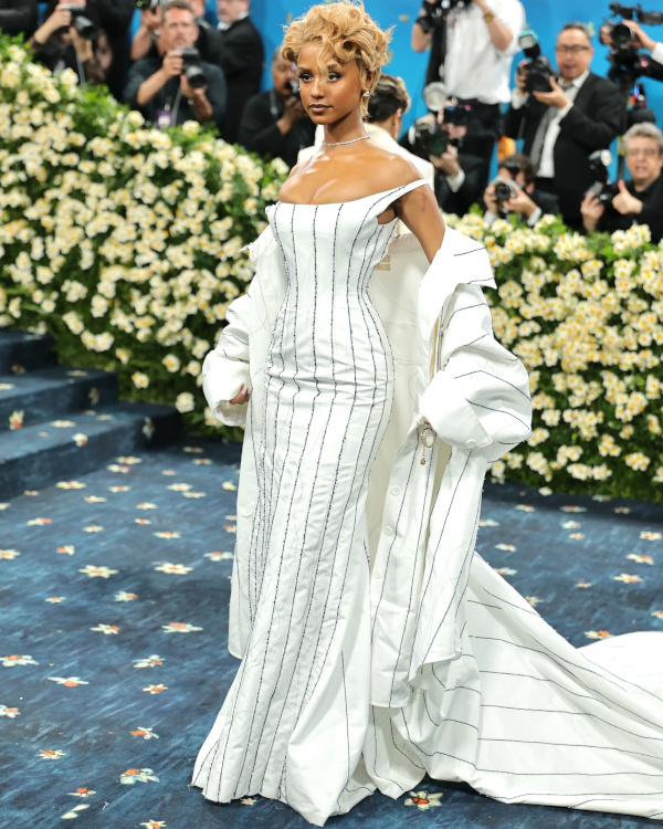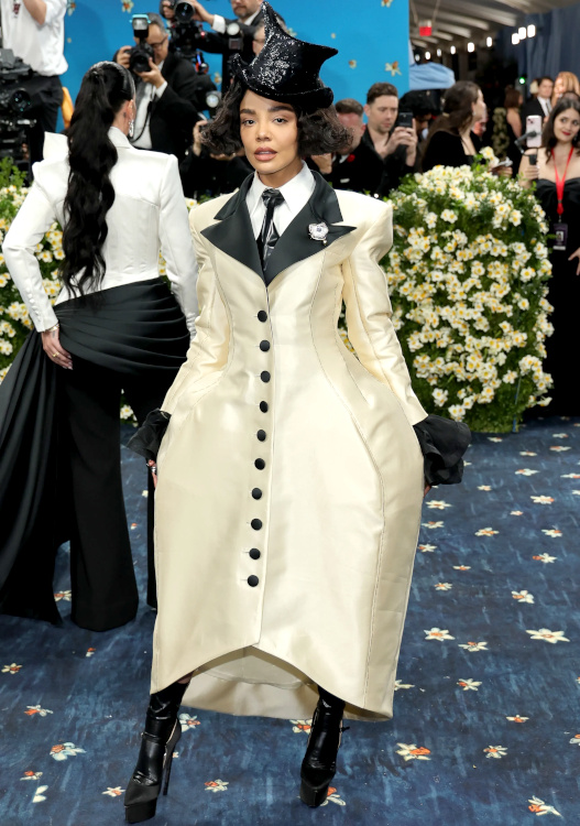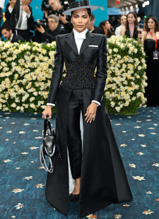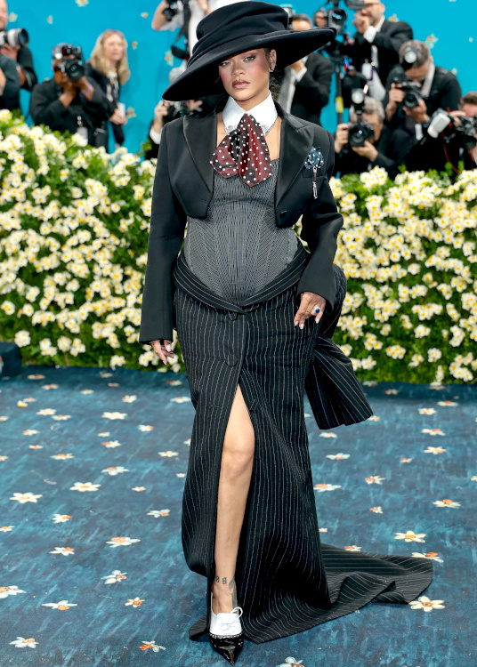 Rihanna profita de l'occasion pour dévoiler sa troisième grossesse toute de Marc Jacobs vêtue (voir ici). Vêtue d'une tenue qu'elle semblait s'être taillée elle-même dans le costume de son patron, Emma Chamberlain avait l'allure d'une secrétaire en plein burn-out (voir ici). Vu et revu, l'interprétation premier degré du style masculin/féminin n'a aujourd'hui plus aucune saveur (voir ici). Respecter le thème de la soirée est une chose, confondre le bal du Met avec un bal costumé en est une autre… (Teyana Taylor) Zendaya fit sensation dans son costume immaculé imaginé par Pharrell Williams (voir ici). Évoquant à la fois l'élégance des années 70 et l'allure de Grace Jones, sa tenue se distingua par son audace maîtrisée et la précision de sa coupe. Hailey Bieber ne prit aucun risque… à part peut-être celui de se casser une jambe (voir ici). Kendall Jenner nous prouva que, même lorsqu'il est revisité, le concept du costume gris peine à se débarrasser de son inhérente morosité (voir ici). La fusion entre tailoring et robe du soir ne prend malheureusement pas à tous les coups… (Ayo Edebiri) La provenance de la micro tâche sur la robe Louis Vuitton d'Anna Wintour n'en finit pas de focaliser l'attention des commentateurs. Robe trop étroite ou mal taillée ? Quoi qu'il en soit, la tenue Jacquemus de Tyla comprimait bien trop sa poitrine pour rester élégante (voir ici). En confiant à Thom Browne la mission de respecter le dress code de la soirée tout en affirmant sa propre singularité, Anok Yai fit un choix audacieux qui lui permit d'éviter le premier degré navrant perçu chez d'autres invitées (voir ici). Entre gants effet collants et corsage noir transparent à baleines, Kylie Jenner peina à apparaître élégante (voir ici). Le total look cuir est rarement synonyme de distinction et la tenue Chrome Hearts de Kim Kardashian ne fit pas exception à la règle (voir ici). Si le fait d'oublier sciemment le bas de sa tenue put apparaître un temps amusant, ce gimmick sent aujourd'hui le réchauffé : ayant perdu toute son audace, il flirte désormais avec le ringard (Sabrina Carpenter). À en juger par la robe entièrement composée de lames métalliques portée par Jenna Ortega, on pourrait croire qu'Olivier Rousteing nourrit secrètement des ambitions de couvreur-zingueur… (voir ici) En imaginant une robe-cravate auréolant l'inoxydable Demi Moore, Thom Browne réinterpréta une nouvelle fois le thème de la soirée avec brio (voir ici).
