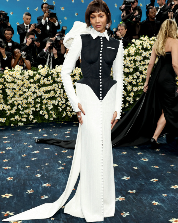 Gigi Hadid ne succomba pas à la facilité en se contentant d'opter pour un costume (ou une version alambiquée de ce dernier) : elle préféra célébrer le thème de la soirée de manière plus subtile en se glissant dans une robe Miu Miu s'inspirant de l'une des toilettes de Joséphine Baker (voir ici). Porter la même tenue que Zendaya est risqué, tant l'actrice maîtrise l'art de l'élégance. Difficile en effet de rivaliser avec son allure… (Anna Sawai, Madonna) La frontière entre sensualité et vulgarité, audace et ridicule, féminité et situation gênante est extrêmement ténue, comme nous le prouva - à ses dépens - Halle Berry (voir ici). Aurora James a apparemment confondu le jour de Pâques avec celui de la soirée du Met… (voir ici) Monica Barbaro se glissa dans une réinterprétation d'une silhouette iconique de la maison Dior, hélas moins envoûtante que sa version d'origine (voir ici). Si la robe Miu Miu de Sydney Sweeney était apparemment une ode à celle de Kim Novak, son décolleté évoquait plutôt celui d'une autre actrice… En cherchant à fusionner citation tailoring et glamour hollywoodien des années 50, la toilette de Miranda Kerr perd en évidence au détriment de l'allure générale de la mutine quadragénaire (voir ici). Entre volants, mousseline, traîne et manches longuissimes, il aurait fallu choisir… (Ivy Getty) Couvrir le cou a malheureusement tendance à tasser la silhouette… (Sarah Snook, Rosalia) S'écarter du thème de la soirée peut se justifier lorsqu'il s'agit d'opter pour une robe particulièrement remarquable ; cela l'est moins lorsqu'on le fait au profit d'une tenue insipide, sirupeuse ou trop premier degré (Natasha Lyonne, Angèle). Amelia Gray nous rappela qu'aussi talentueux soit-il, Alessandro Michele n'en reste pas moins capable du pire (voir ici et là). Paillettes, tenue ultra moulante et imprimé léopard ne sont pas faits pour vivre ensemble (Precious Lee). Shakira n'a apparemment pas compris qu'il n'y aura pas de "Barbie 2", et qu'il est donc inutile de tenter de rivaliser avec la garde-robe de Margot Robbie.