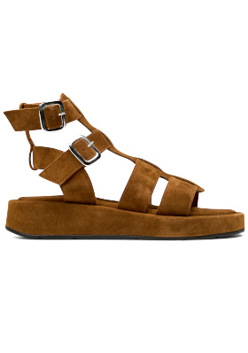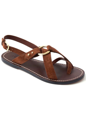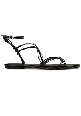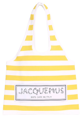 Les sandales marron réchauffent la fraîcheur du bleu ciel et ancrent la silhouette avec naturel. Ce duo rappelle les harmonies de la nature, entre ciel clair et terre chaude. Le jeu de rayures fonctionne grâce à la variation de leurs largeurs, qui crée du rythme visuel. Le jaune agit comme un point de lumière, dynamisant l'ensemble par contraste chromatique.