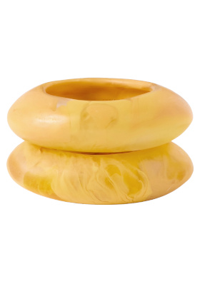 La coupe ajustée du top structure le haut du corps. La longueur du bermuda est équilibrée par la hauteur des talons. Les sandales à talons carrés allongent la silhouette tout en garantissant une bonne stabilité. Le vert du bracelet rythme le look tout en lui apportant une touche de fraîcheur.