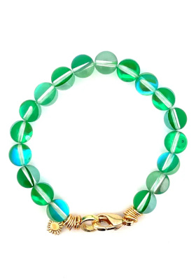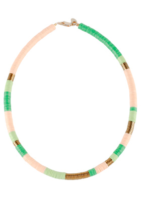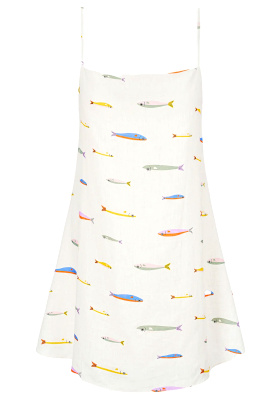 Le vert du panier "Mojito" et les nuances pastel du collier insufflent de la gaieté sans pour autant dominer l'ensemble. Le bob et les sandales marron apportent de la profondeur au look. Les motifs de la robe "poissons" insufflent à l'ensemble une légèreté parfaite pour l'été. Chaque pièce reste simple en soi, mais leur combinaison produit une allure à la fois joyeuse, fraîche et cohérente.