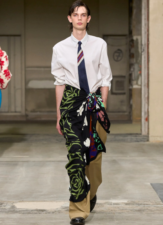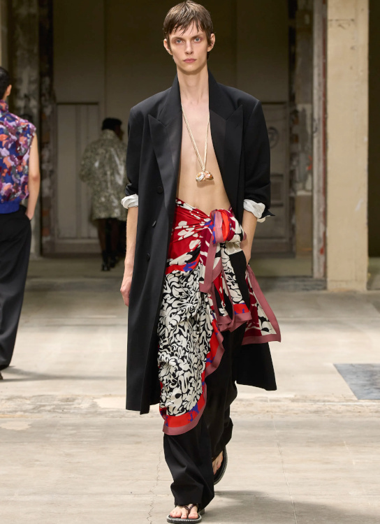 Je crois que personne au monde ne s'habille comme il veut. On est modelé par notre société, la mode etc... Cf l'historien de la couleur M Pastoureau. Les hommes ne peuvent pas s'autoriser, dans nos sociétés, à mettre les vêtements proposés par ces créateurs de mode.