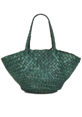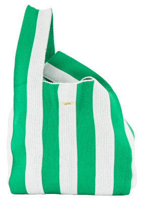 Le vert doux de la jupe culotte et des lunettes dialogue harmonieusement. Le body marron chocolat structure la silhouette. Les mules et le body, tous deux bruns, créent un axe vertical qui allonge la jambe et renforce l'élégance minimaliste du look. Le cabas rayé vert et blanc insuffle une touche estivale qui casse la rigueur des teintes sourdes tout en restant dans la même gamme. Le collier doré apporte du relief et une dimension nineties/luxe assumée à la silhouette. Chaque pièce a une ligne nette et franche, mais c'est leur combinaison, contrastée et équilibrée, qui crée l'intérêt du look.