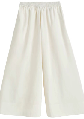Les jupes que tu as proposé ont souvent une taille élastiquée mais il existe aussi des jupes culottes avec une taille boutonnée dans un ésprit soft tailoring, idéalement avec des pinces, et je trouve ça mieux que les taillées élastiquées qui on tendance à glisser, à se détendre, font une silhouette moins nette. Une taille boutonnée ca va aussi bien pour prendre son train que pour aller à un rendez-vous important ou à une occasion un peu plus habillée.