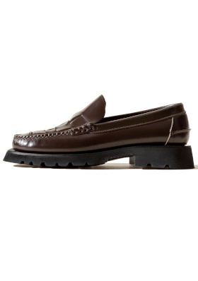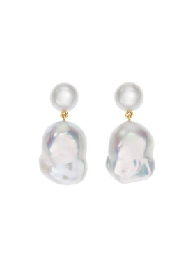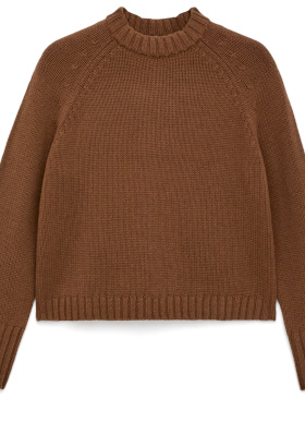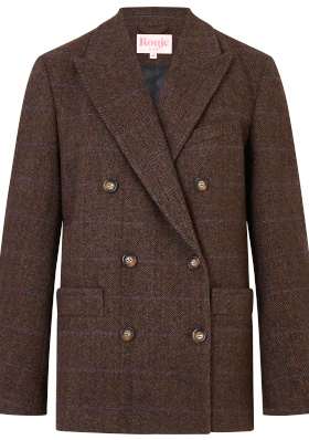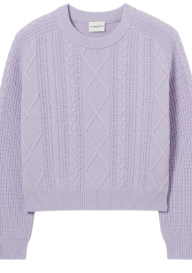 Le pull lilas insuffle une note de douceur à la masculinité du blazer. Le tee-shirt blanc équilibre les autres tons et fait respirer l'ensemble (on le laisse dépasser du pull). Prolongeant la ligne du blazer, le jean tombe généreusement sur les mocassins. Les mocassins chocolat ancrent la silhouette. Les créoles dorées apportent une touche féminine sans pour autant rompre l'équilibre sobre du look.