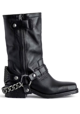 Le caban apporte chaleur et confort à un look à l'énergie féminine. Le vert du marcel (qui dépasse du pull sur la jupe) dynamise subtilement l'ensemble. Les bottes montent suffisamment haut pour que la jupe les recouvre légèrement, ce qui, en supprimant la rupture visuelle au niveau du mollet, permet d'allonger la silhouette. La diversité des textures en présence au sein du look lui fait gagner en densité.