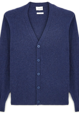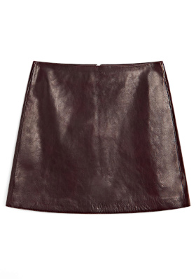 La chemise à carreaux se glisse sous le gilet et se porte ouverte sur le marcel (on pense à laisser dépasser ses manches de celles du gilet). Le marcel blanc sert de base lumineuse. Le bleu du cardigan est moins foncé qu'un bleu marine classique, ce qui lui permet de laisser les autres teintes respirer, là où un bleu plus dur les aurait écrasées. Le cuir lisse de la jupe, la maille duveteuse des chaussettes et celle plus lisse du cardigan permettent de créer un intéressant télescopage de textures. Les baskets blanches à semelle crème dynamisent la silhouette sans l'alourdir.