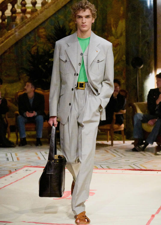 Accompagner les camaïeux de verts d'une touche de jaune (Bottega Veneta).