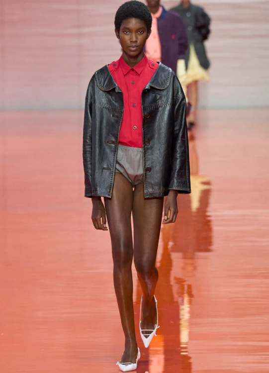 Chercher dans les friperies des vestes en cuir col claudine à associer à des chemises esprit militaire (Prada).