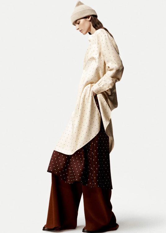 Superposer robe et jupe affichant le même motif mais dans des teintes différentes (Loro Piana).