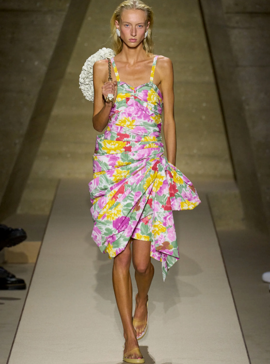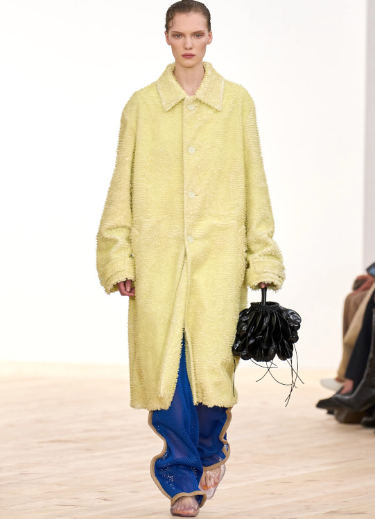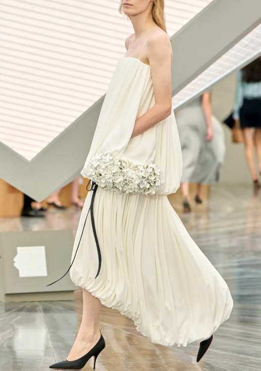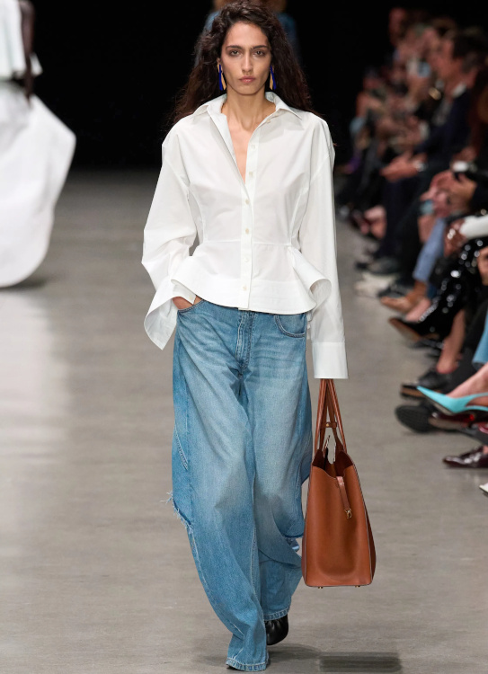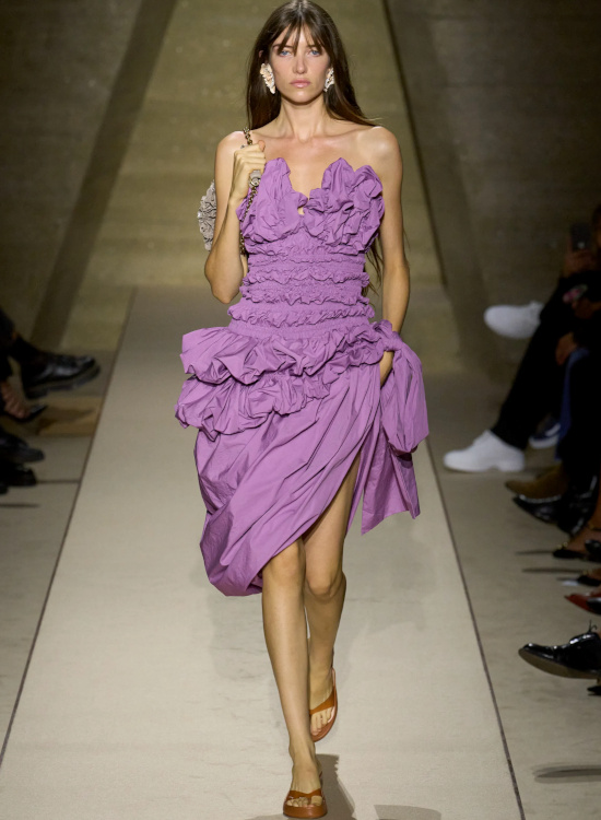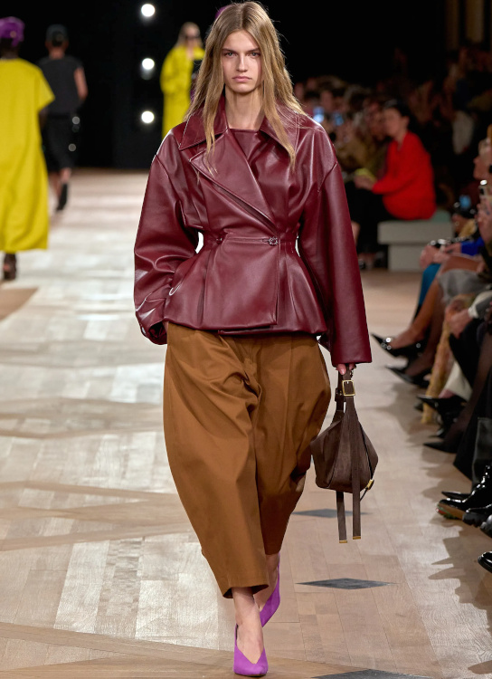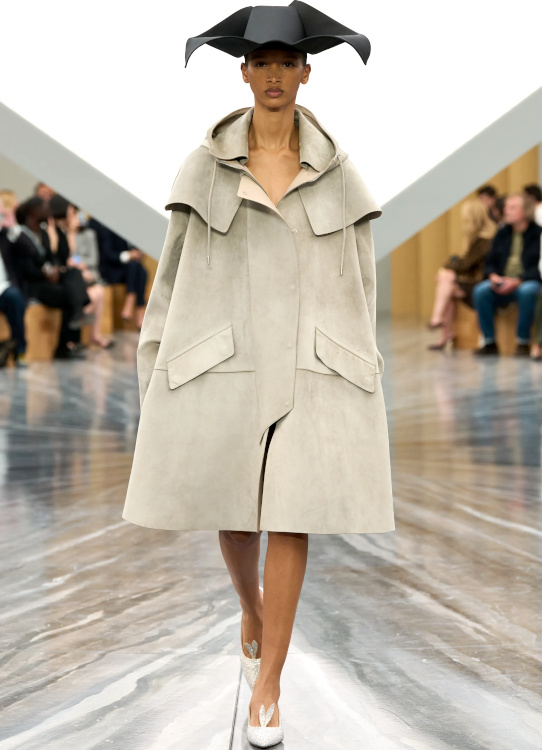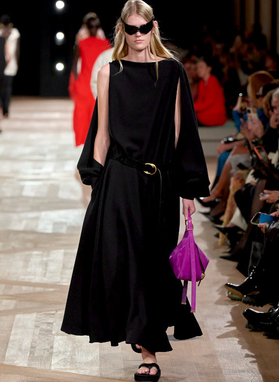 Si elle s'avère moins percutante que l'opus masculin, la première collection Dior femme signée Jonathan Anderson n'en demeure pas moins prometteuse. Le créateur de 40 ans prouve en effet qu'il ne se laisse pas intimider par le poids de l'héritage Dior en nous en livrant une lecture personnelle, nourrie de sa propre grammaire stylistique (voir ici, ici et là). La partition est encore hésitante (voir ici, ici et là) et l'équilibre entre audace, casualness, désirabilité immédiate et aventure cérébrale reste à affiner, mais les fondations sont là. Au final, mon envie de voir s'épanouir la femme Dior selon Jonathan Anderson n'a jamais été aussi vive : l'homme qui imagina la robe du passage 33 (voir ici et là) ne peut en effet qu'être capable du meilleur… Faussement simple, le duo blouson légèrement oversize + mini-jupe rose layette fait mouche chez Victoria Beckham (voir ici). Je me demande si Rick Owens, Duran Lantink et Glenn Martens ont fréquenté le même pensionnat cauchemardesque, s'ils participent à des réunions occultes dans les catacombes et s'ils mangent des oisillons morts au petit-déjeuner. Difficile en effet d'expliquer autrement la teneur de leurs collections respectives… (voir ici, ici et là) Stella McCartney nous prouve qu'il suffit de peu de choses pour transformer un "no look" en silhouette impactante (voir ici). Heureuse de retrouver chez Loewe les créateurs Jack McCollough et Lazaro Hernandez qui, après m'avoir cruellement laissés sur ma faim lors des dernières collections Proenza Schouler, semblent avoir récemment ingurgité un élixir de jouvence créatif (voir ici, ici et là).