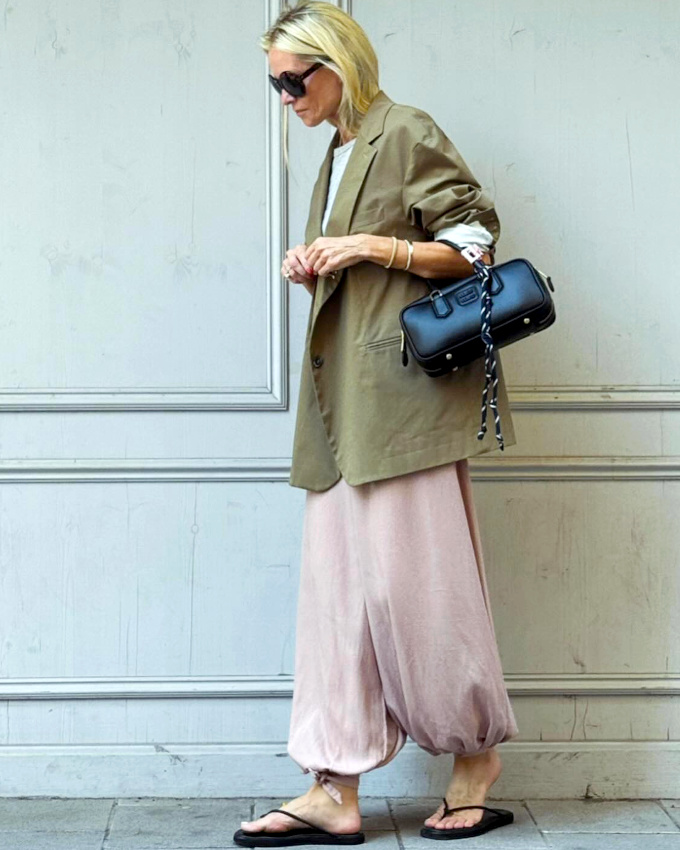 User et abuser du trio bleu marine/kaki/blanc (voir ici). Se familiariser doucement avec le concept du pantalon Aladin (voir ici). Mixer rayures verticales, chevrons et imprimé léopard (voir ici). Booster les camaïeux de verts grâce à un combo de textures douillettes (voir ici). Affûter le duo "robe sur jupe" en enfilant un blazer plutôt qu'un gilet mou (voir ici). Marier l'ampleur d'un gilet dense à la légèreté raffinée d'un pantalon large imprimé (voir ici). Illuminer le duo bleu marine/marron clair via une touche de bleu roi (voir ici). Ne pas oublier que les casquettes NY sont idéales pour "upgrader" la dégaine d'un look matinal (voir ici). Chausser une paire de Nike Cortez pour dynamiser ses costumes (voir ici). Superposer encore et toujours (voir ici). Marier blazer long cintré et jean large (voir ici).