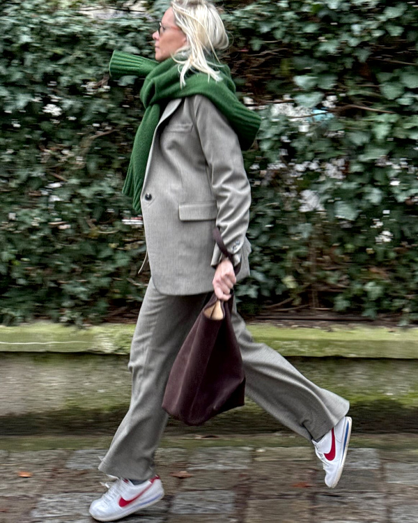Elle me fait penser que les baskets de running ça peut être génial avec des blazers. J'ai tendance à préférer les baskets moins épaisses, style samba, avec des blazers mais avec le costume entier ce sont les grosses baskets qui donnent de l'allure. A réfléchir !