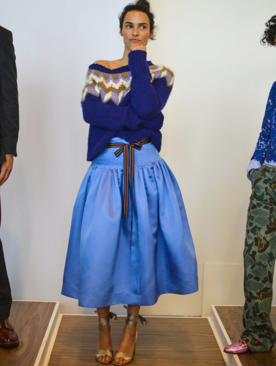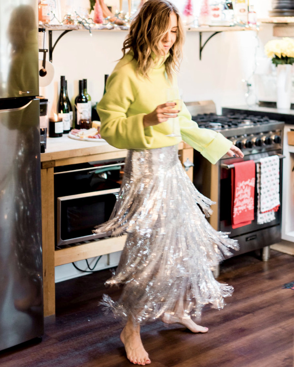 Se contenter du minimum en misant sur une tenue beige/blanc rehaussée d'une paire de boucles d'oreilles scintillantes et d'un trait de rouge à lèvres (voir ici). Dédramatiser ses robes à fines bretelles en glissant en dessous une petite laine (attention à ce que la "petite laine" ne soit pas trop envahissante). Céder à l'appel cosy-festif des chaussettes à paillettes (voir ici). Assumer sa passion pour le Lac des cygnes en se glissant dans une longue jupe à plumes (on veillera à tempérer l'aura féérique de cette dernière en l'associant à un pull col rond unisexe) (voir ici). Faire la part belle au total look noir jouant avec les textures (voir ici). Se prendre pour un personnage de Wes Anderson : si on ne se l'autorise pas à Noël, quand pourrions-nous le faire ? (voir ici). Plus que jamais au moment des fêtes, le camaïeu de teintes/mix de textures est à consommer sans modération (voir ici). Ne pas réserver au Père Noël le port du costume rouge (à condition de choisir le sien bien coupé et de le porter avec une chemise audacieusement déboutonnée) (voir ici). Allier robe noire en plumetis (en dentelle, à sequins ou autres) et paire de baskets noires et blanches (voir ici). Assumer son désamour des tenues de fêtes en optant pour un look de grand-père joyeux ou de Texane glamoureusement déprimée (voir ici et là). Allier longue jupe de sirène argentée et pull-over jaune acide (voir ici). Dompter la sexiness d'une jupe ultra fendue en l'associant à un pull col rond ton sur ton (voir ici). Garder à l'esprit qu'un seul élément esprit "boule à facettes" suffit pour transformer un look sage en un look festif (voir ici et là). Ne pas hésiter à reconduire au-delà des fêtes le duo pull ample/jupe à sequins midi (voir ici).