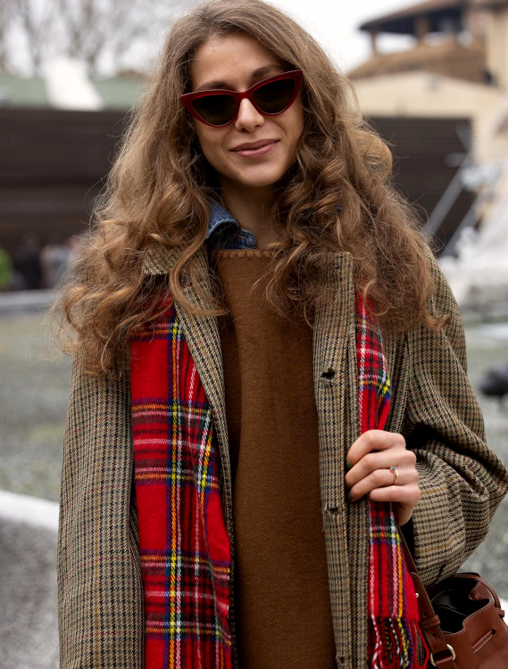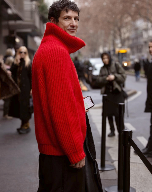 Saupoudrer la tendance montante "pull camionneur" d'un beau rouge coquelicot (voir ici). Marier télescopage d'imprimés et camaïeu de teintes (voir ici). Laisser une chance à l'imprimé Bambi en le traitant sur une note rétro chic (voir ici). Exploiter la présence très discrète d'une couleur dans un motif - ici la fine ligne rouge du prince-de-galles - pour légitimer l'introduction plus visible de cette même couleur dans le look (voir ici). Marier l'ampleur rugueuse d'un pantalon marron avec la douceur d'un gilet côtelé gris clair (voir ici). Look dans le même esprit : + + ce tee-shirt blanc + ce collier rouge. Offrir à l'austérité vestimentaire ses lettres de noblesse en misant sur des matières de qualité (voir ici). Les jours de pluie, oser porter (voir ici). Utiliser la teinte lavande pour réveiller le duo bleu marine/kaki (voir ici). Look reprenant cette idée : porté sur les épaules + + + une chemise kaki. Porter son écharpe croisée plutôt que nouée (voir ici). Apporter une touche graphique à ses pardessus en les réchauffant d'un pull marinière porté sur les épaules (voir ici). Duo reprenant cette idée : ce pull + .