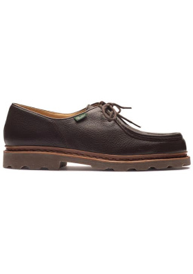 Jouer sur le contraste entre la rigueur du pantalon de ville et la dimension nonchalante des Boston. Glisser à moitié le tee-shirt sur le devant du pantalon. Opter pour une coiffure dégageant bien la nuque.