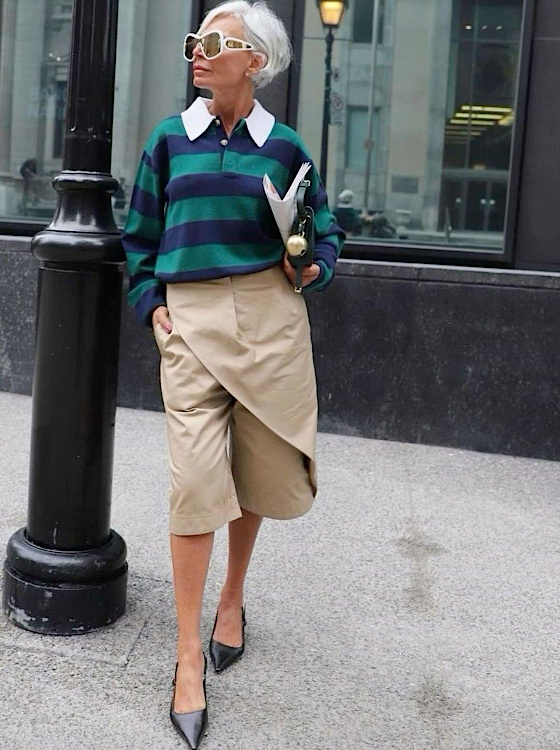 À l'inverse, le bermuda qui arrive juste au-dessus du genou demande déjà plus de précision. C'est souvent là que les choses se compliquent : s'il s'arrête au mauvais endroit, il coupe la jambe, épaissit le genou et peut donner à l'ensemble un air un peu guindé/maladroit/daté.
