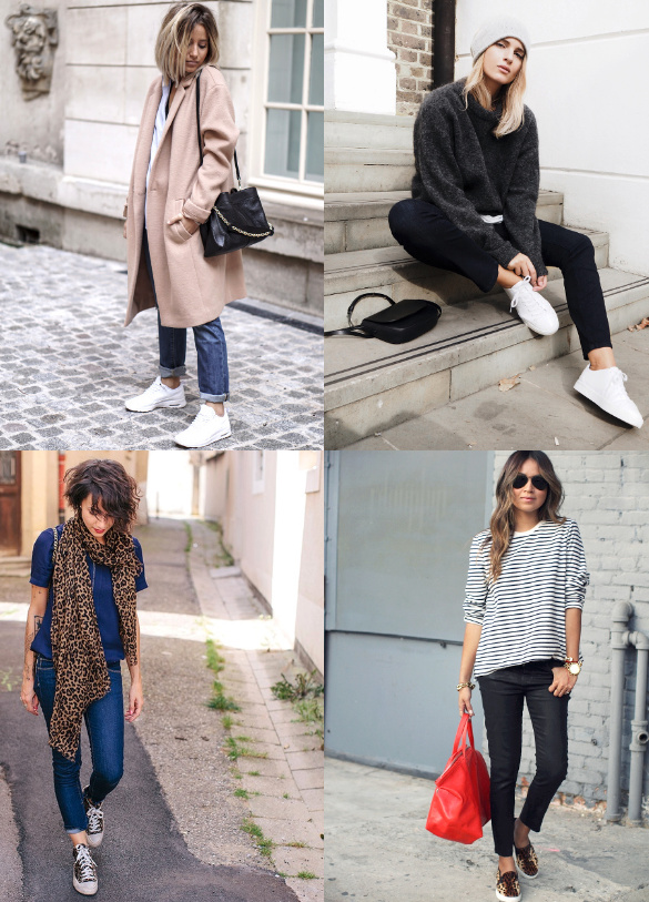 Chaussures : on adopte deux styles de paires de chaussures. Un style de baskets décontractées à associer facilement avec une tenue plus habillée ou vos tenues de sport. Pour la période de froid, on privilégie des chaussures noires sobres avec une bride ou une fermeture éclair de style bottine avec éventuellement un léger talon. Chaussures basses, à mi-hauteur ou grandes bottes : à chacun son style.